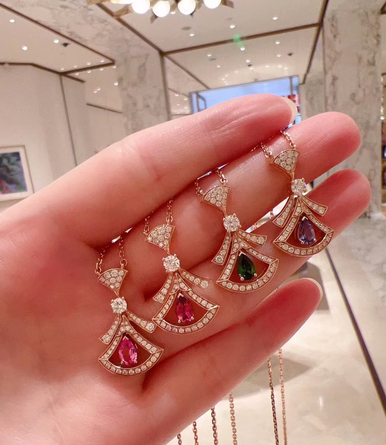 Jean Schlumberger by Tiffany Sixteen Stone Narrow Pendant Necklace with Diamonds