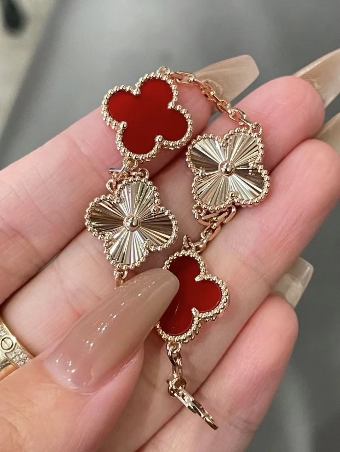 Van Cleef & Arpels Rose Gold Red Mother of Pearl Vintage Alhambra Bracelet 5 Motifs