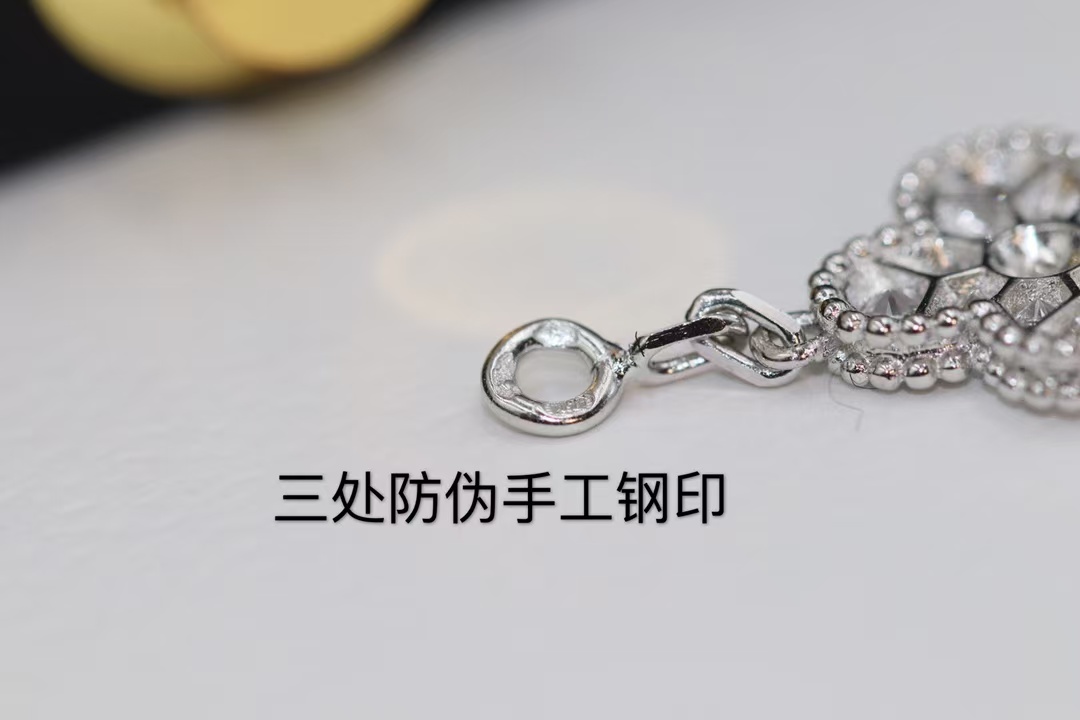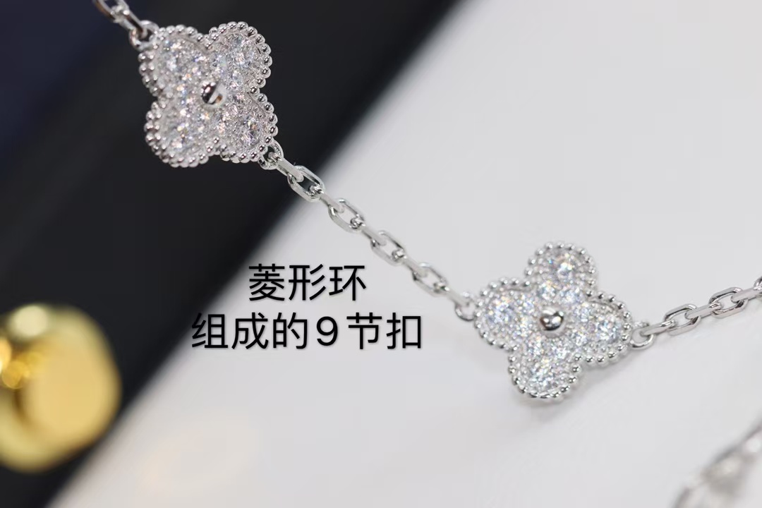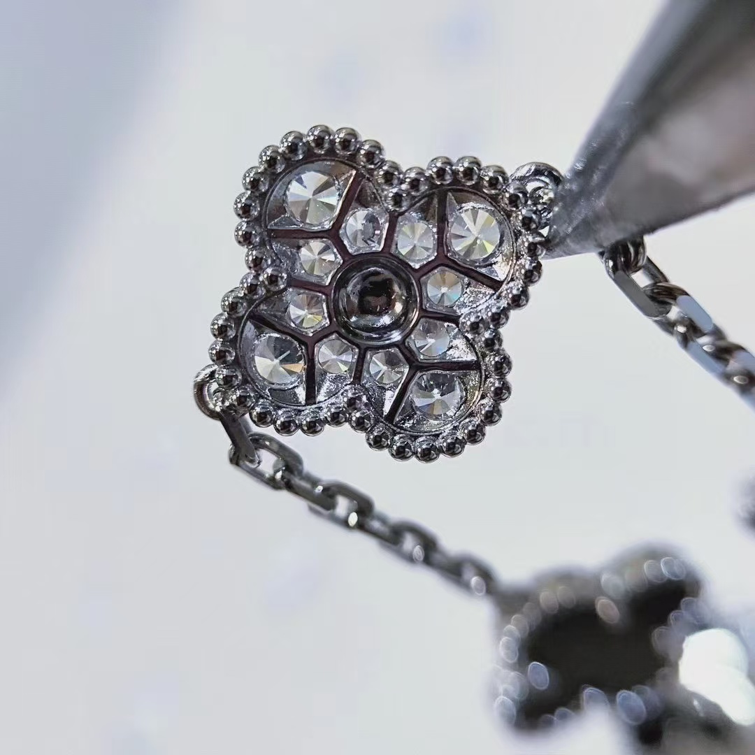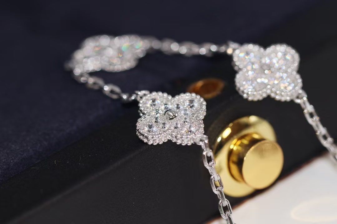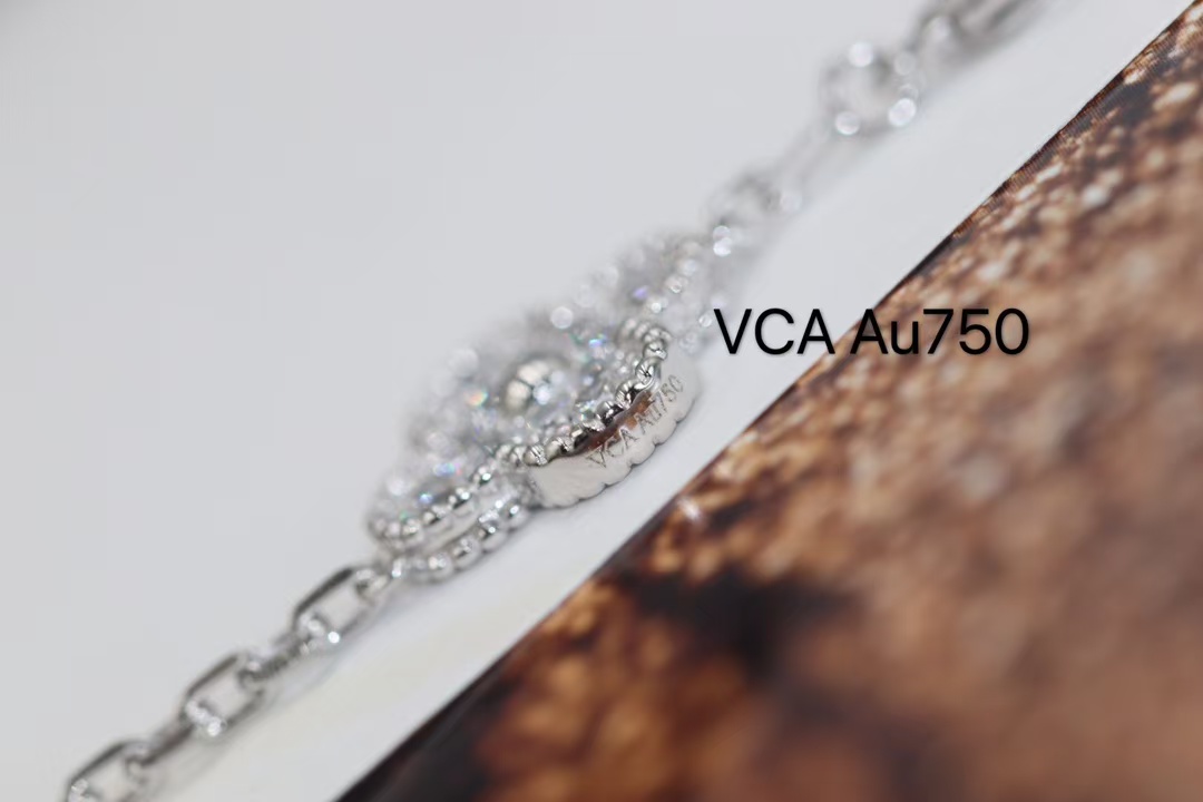Van Cleef & Arpels White Gold Full Diamond Vintage Alhambra Bracelet 5 Motifs