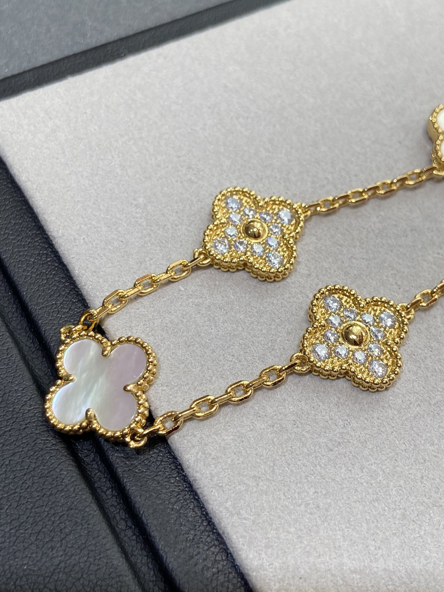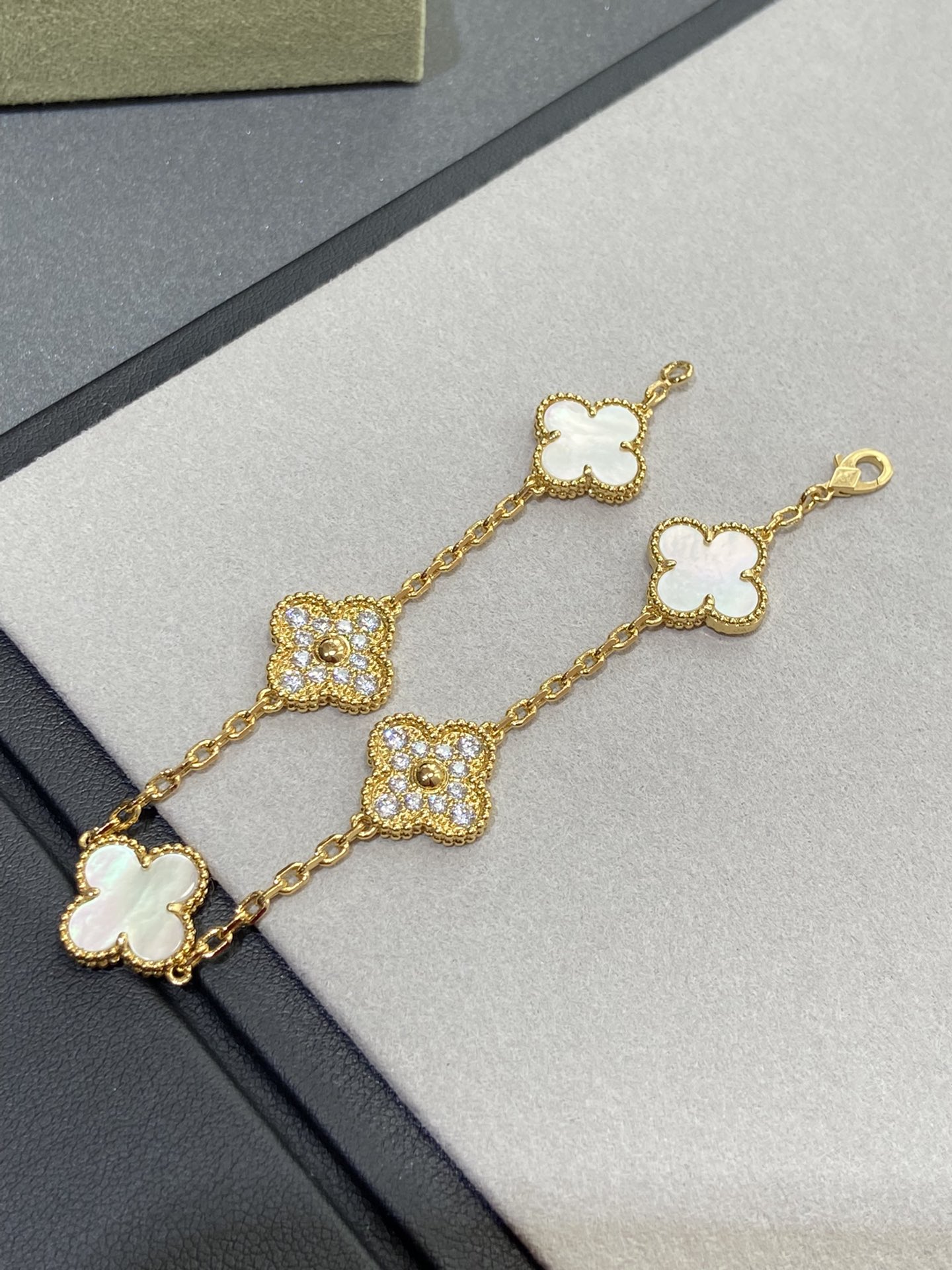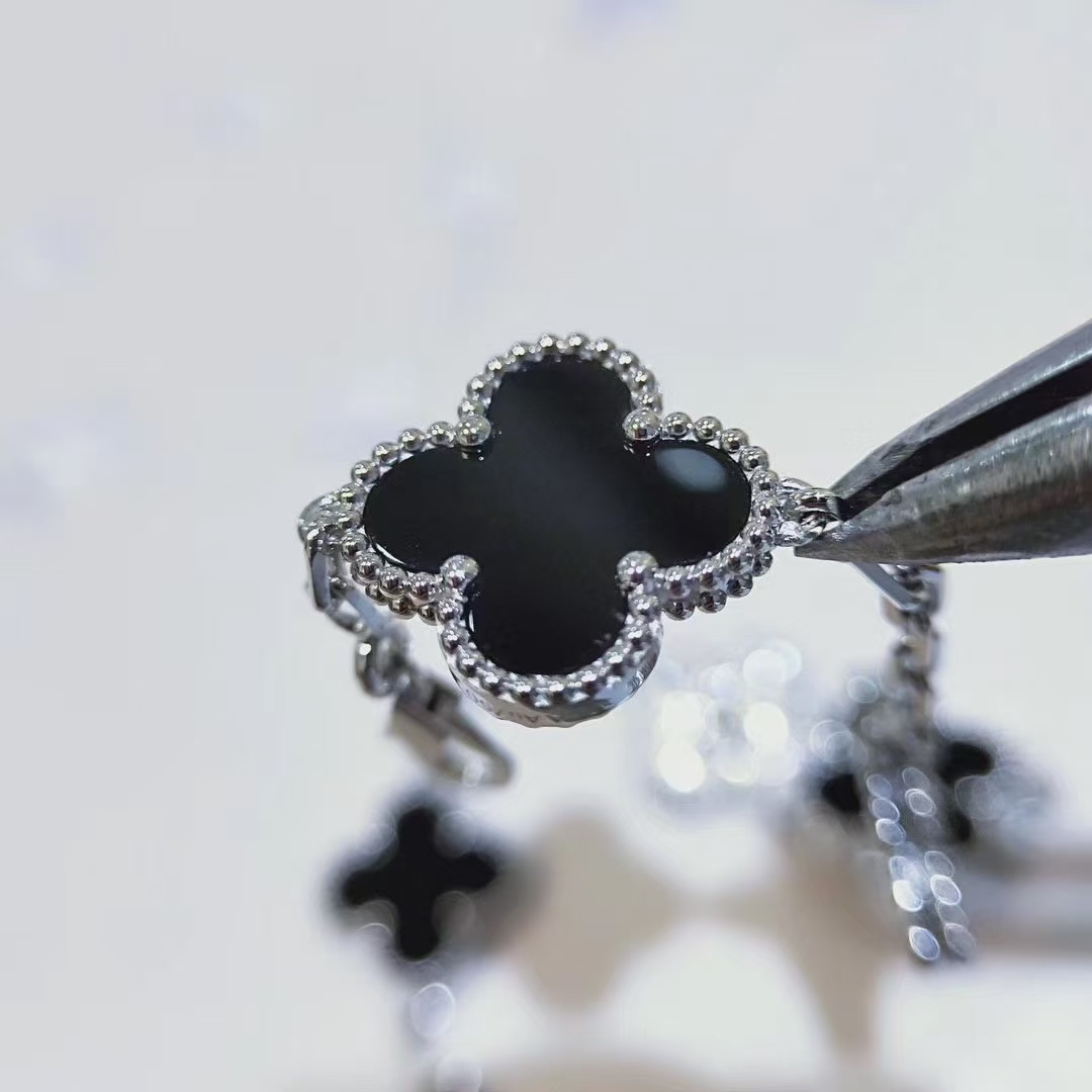 Van Cleef & Arpels Diamond & White Clover Vintage Alhambra Bracelet ,5 Motifs
