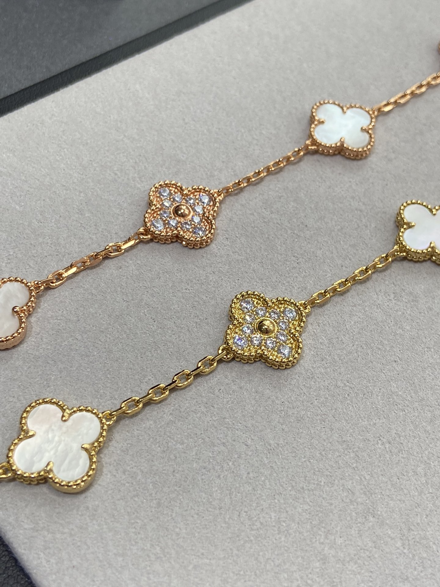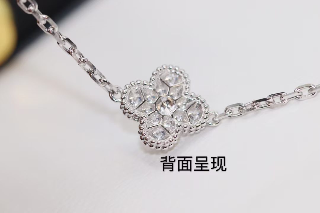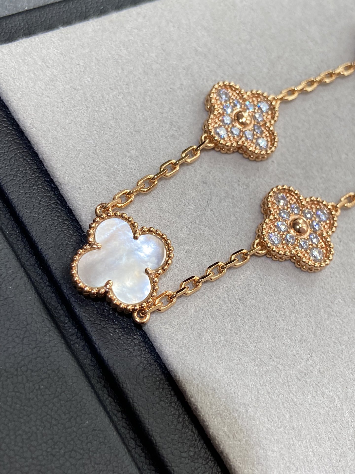 Van Cleef & Arpels Diamond & White Clover Vintage Alhambra Bracelet ,5 Motifs