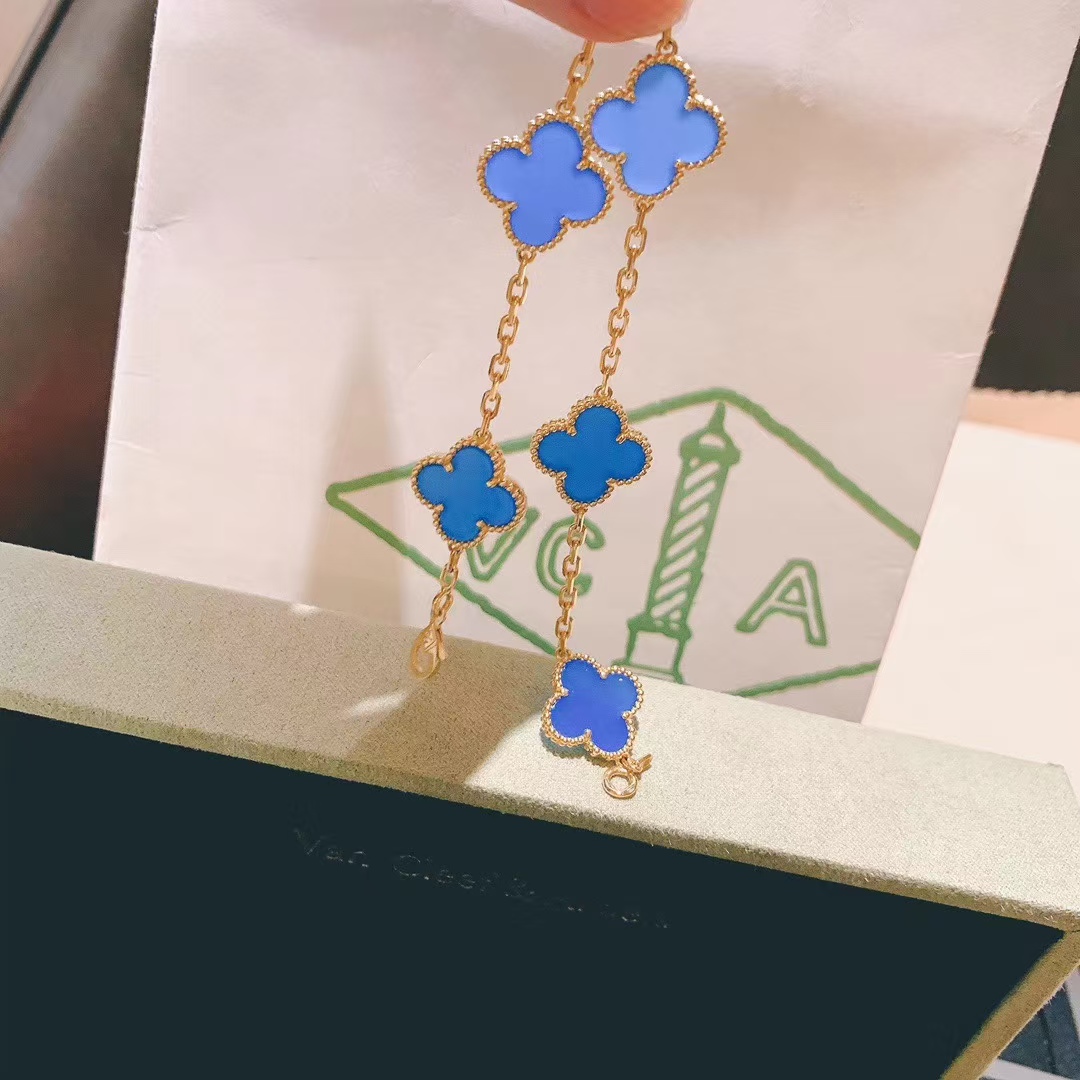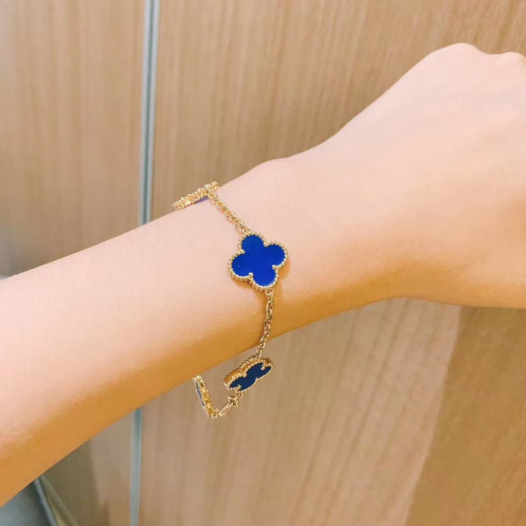 Van Cleef & Arpels Blue Agate Vintage Alhambra Bracelet 5 Motifs
