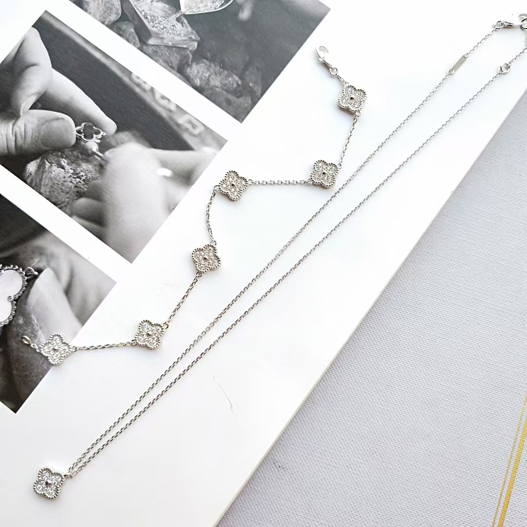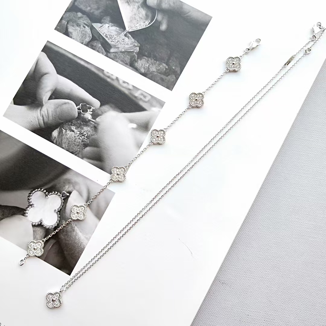 Van Cleef & Arpels Silver White Clover Vintage Alhambra Bracelet, 5 Motifs