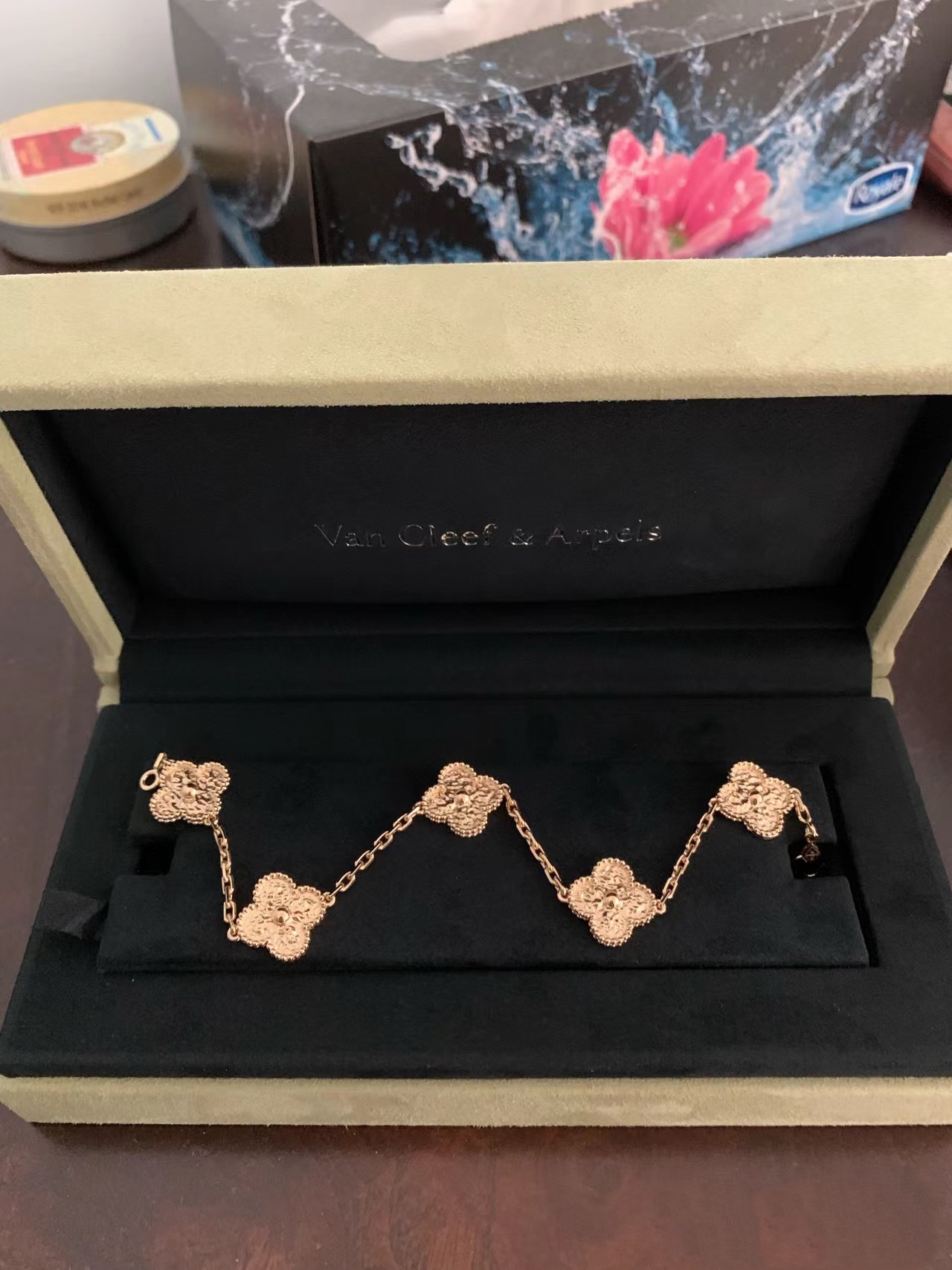 Van Cleef & Arpels Vintage Alhambra Bracelet Necklace, Rose Gold,No Diamond