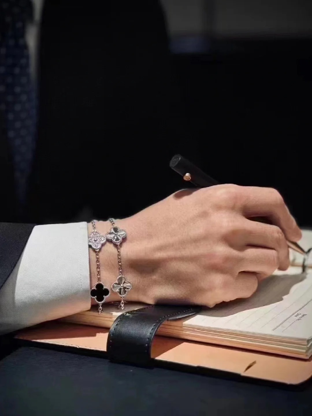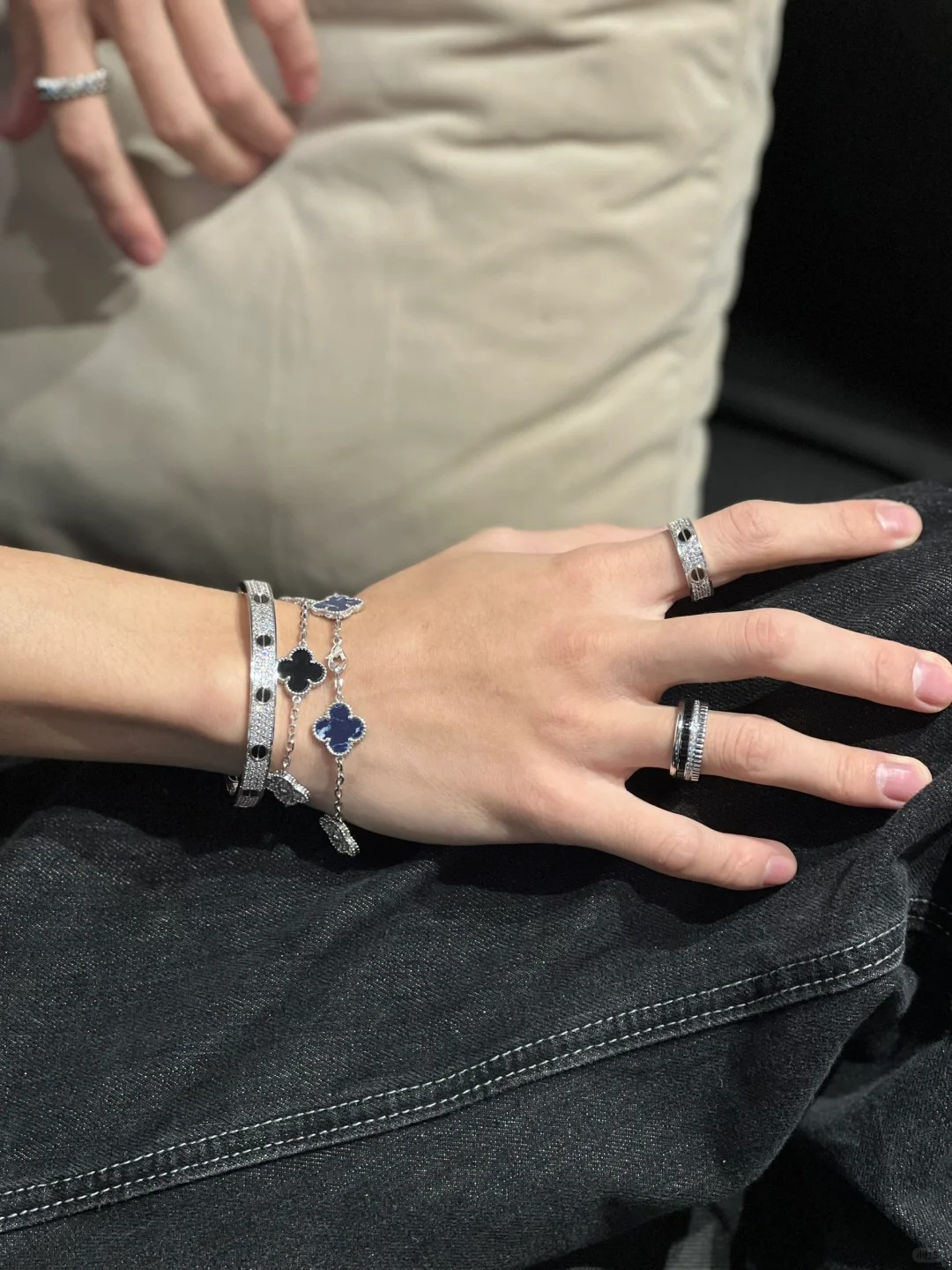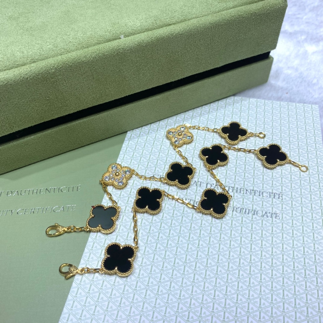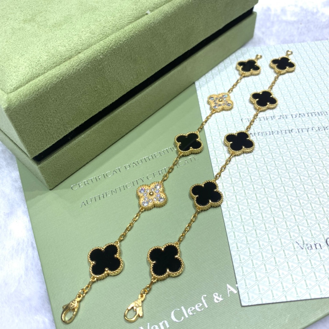 Van Cleef & Arpels Black Onyx & Silver Vintage Alhambra Bracelet, 5 Motifs
