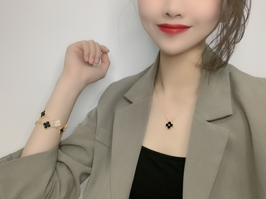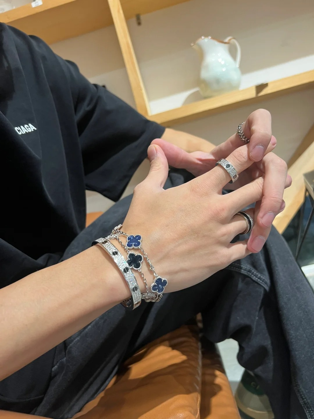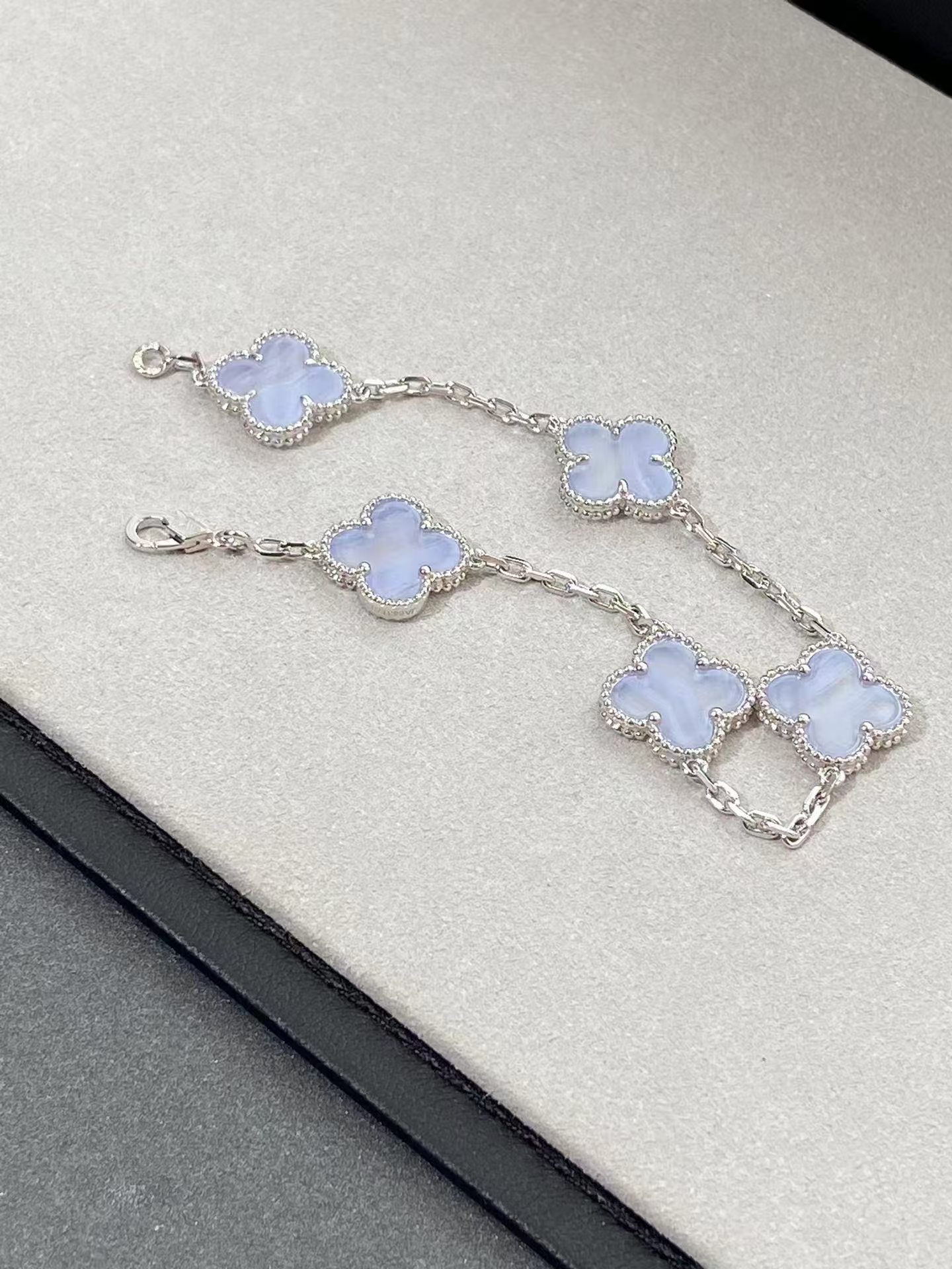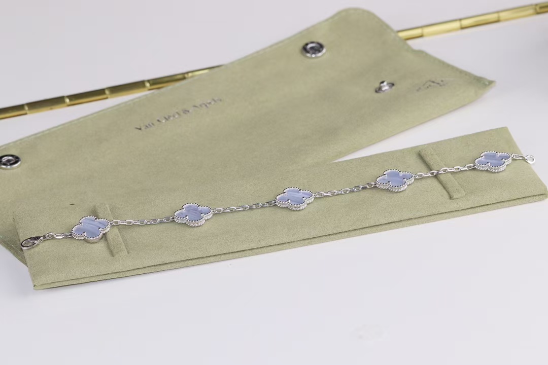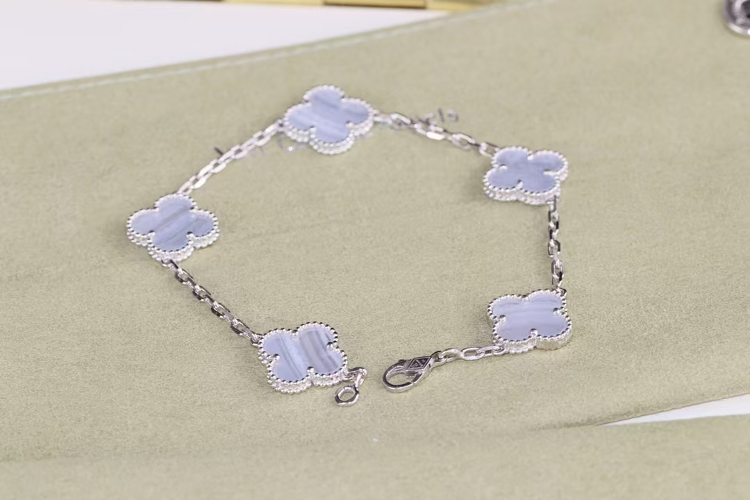 Van Cleef & Arpels Black Onyx & Silver Vintage Alhambra Bracelet, 5 Motifs