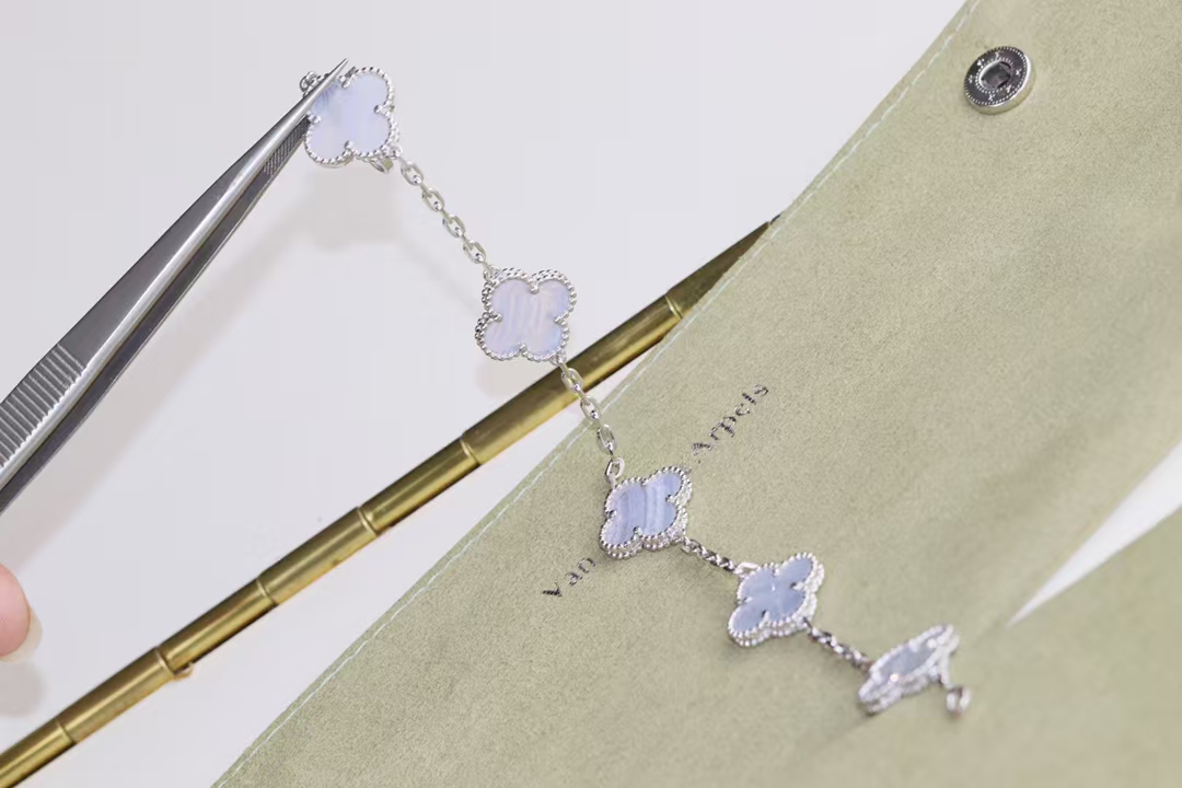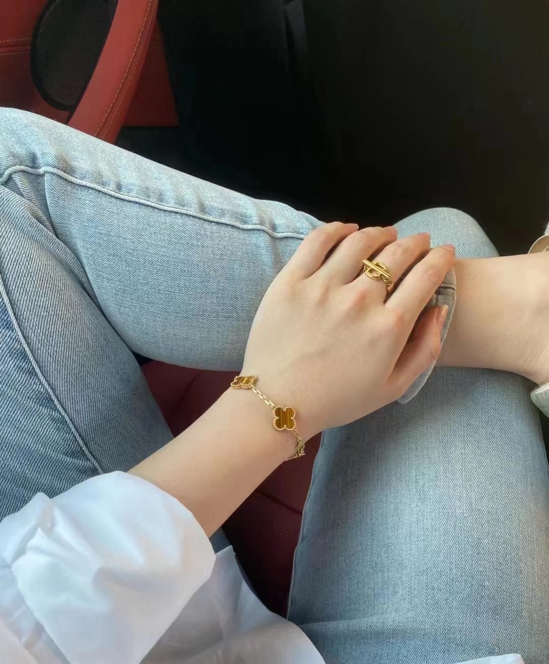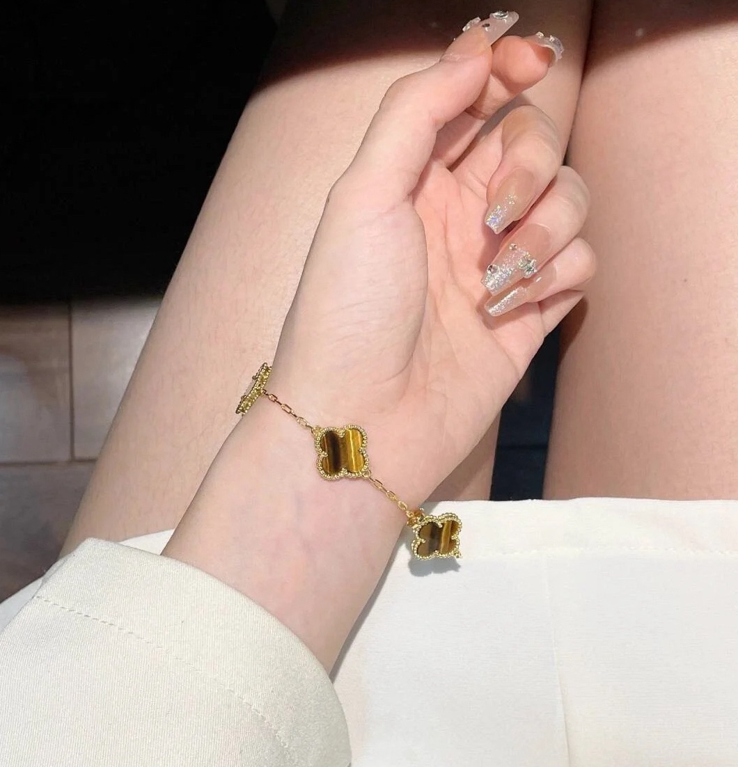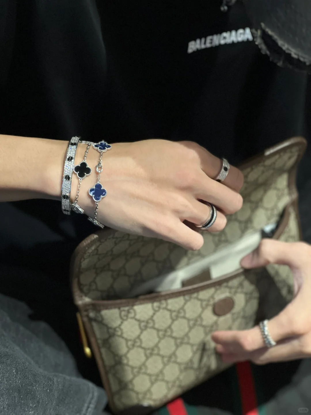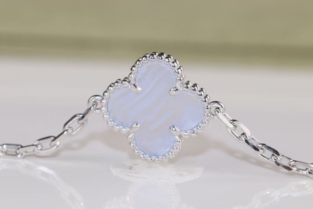 Van Cleef & Arpels Black Onyx & Silver Vintage Alhambra Bracelet, 5 Motifs