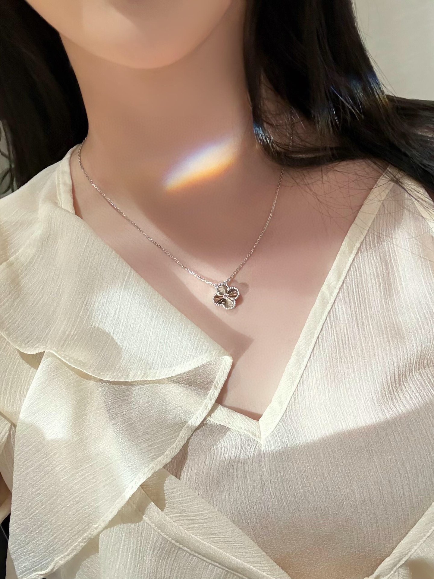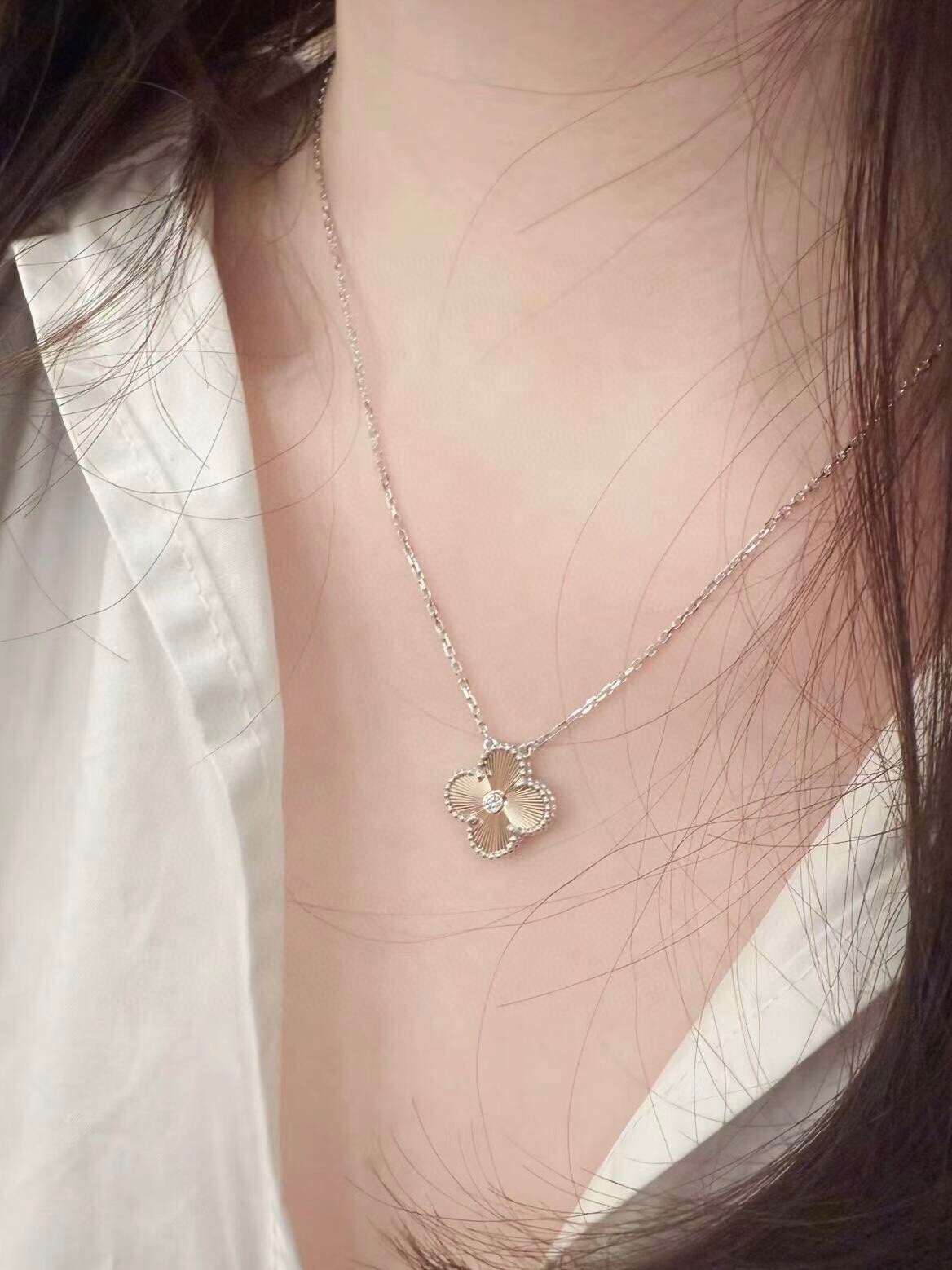 Van Cleef & Arpels Silver Gold Vintage Alhambra Pendant Necklace, 1 Motif
